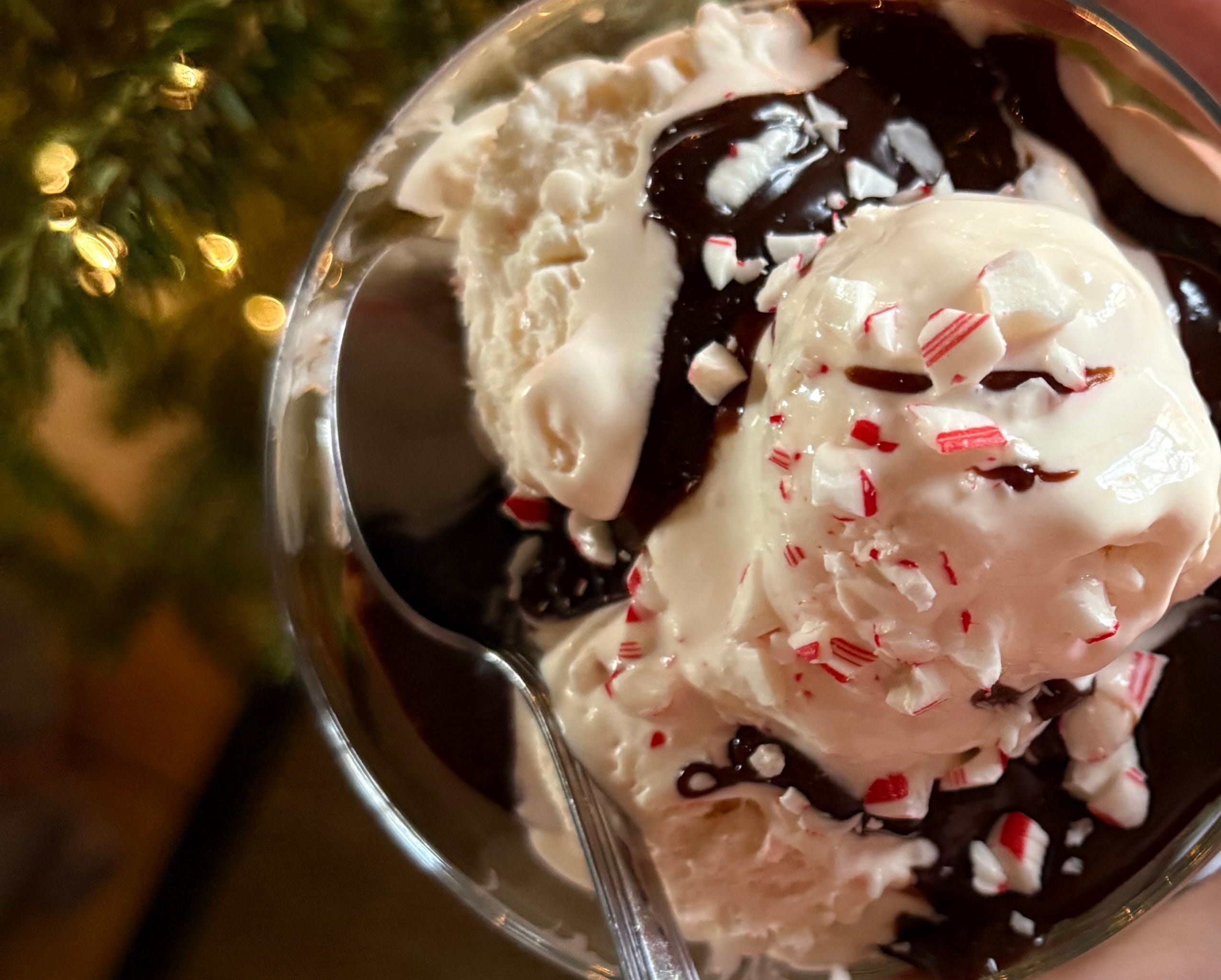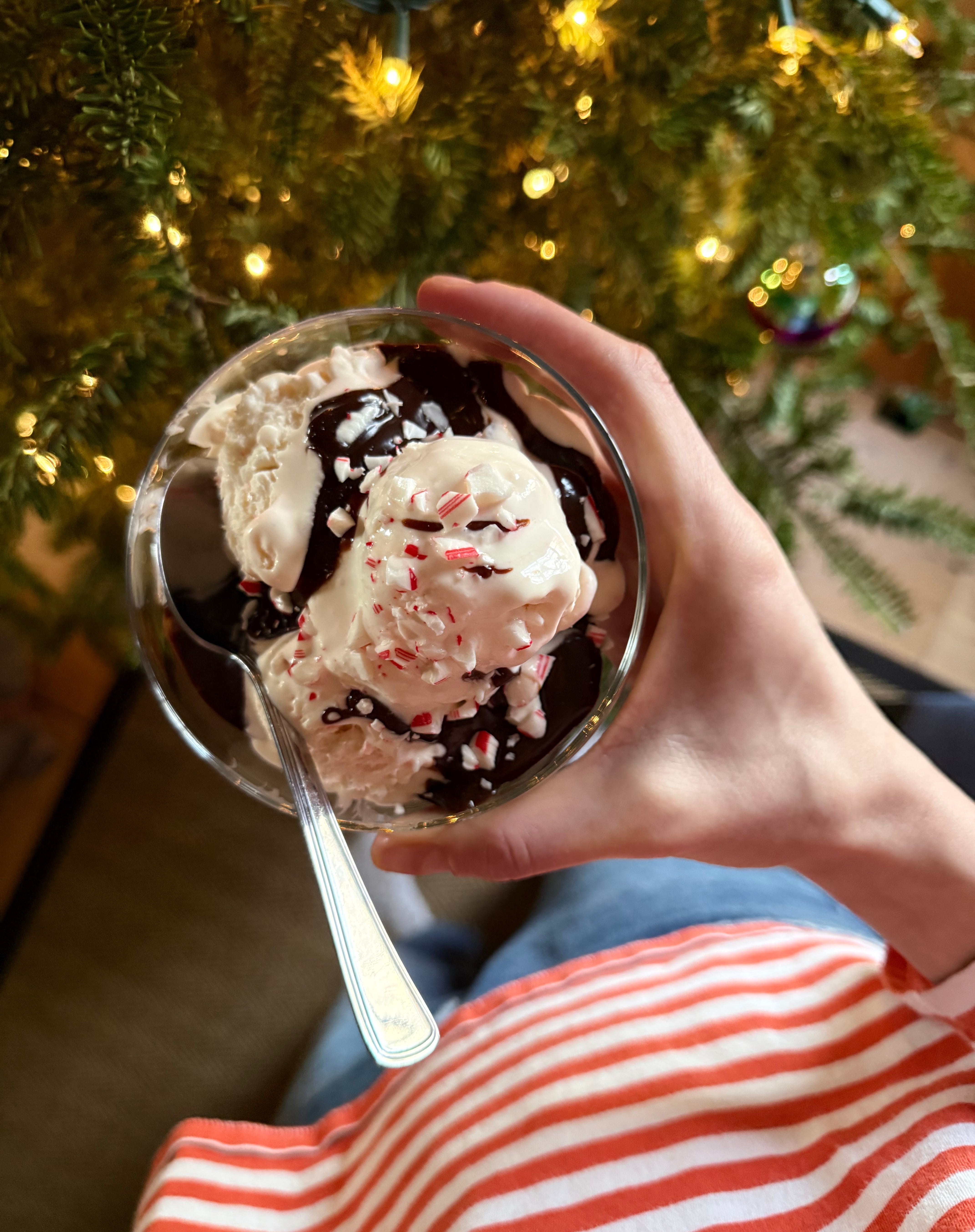 My mom and I were menu planning for Christmas Day dinner last week, and she suggested, as she does almost every year, that we have peppermint ice cream and hot fudge for dessert.